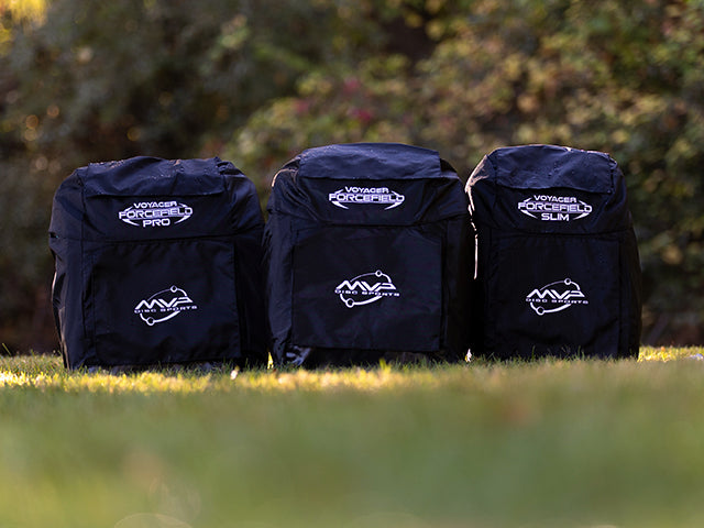 Protect your gear from the elements with the MVP Voyager Forcefield Rainfly! The Forcefield was designed for keeping your discs and equipment dry with some creative engineering for easy access. This rainfly goes on quickly and has built-in magnetic strips on the front, top, and putter flaps that self-clasps, giving your discs and accessories constant protection from the wet weather. The waterproof polyester with reinforced nylon bottom will fully cover the bag, offering protection on all sides.